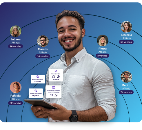 Mantenha seus afiliados motivados com rankings de performance e mecânicas que estimulam a competição saudável.