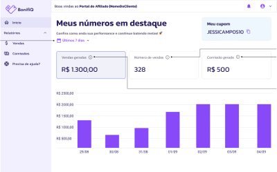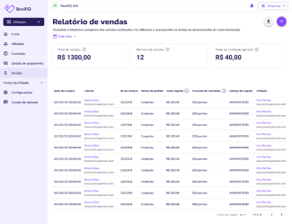 Acompanhamento diário de faturamento, volume de vendas e resultados por afiliado para decisões baseadas em dados.